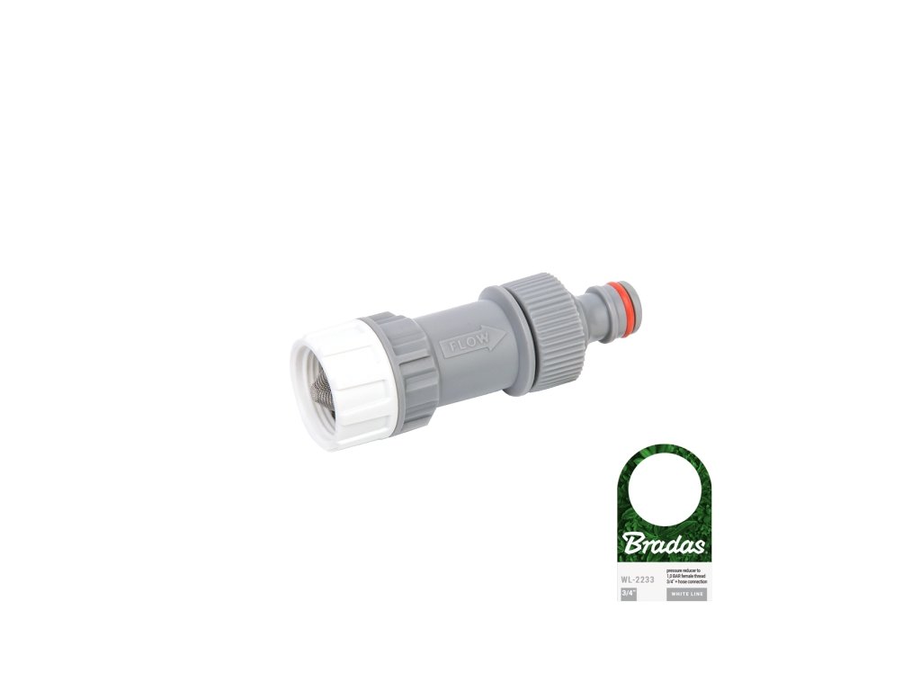 Regulační ventil s filtrem Bradas WHITE LINE. Redukce tlaku na 1 bar. Filtr s vnitřním závitem - 3/4" + hadicovou vsuvkou.
