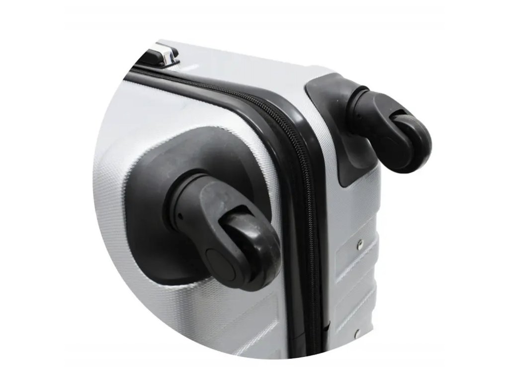Cestovní kufr vyrobený z odolného ABS plastu, Zavazadlo má čtyři otočná gumová kola, aby jste nemuseli kufr zvedat, pokud však taková potřeba vyvstane, našli jsme vhodné řešení ve formě neoprenové povrchové úpravy dvou držadel, boční a horní, charakterizovaných hladkostí a měkkostí.