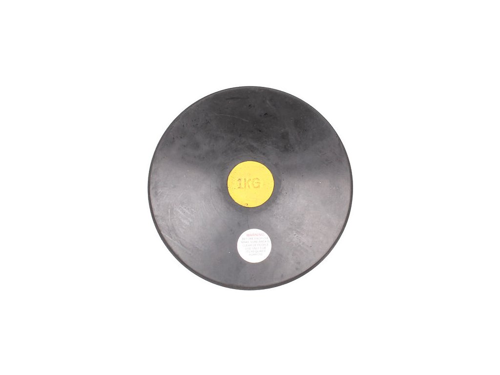 Jednolitý tréninkový disk z lisované černé gumy.