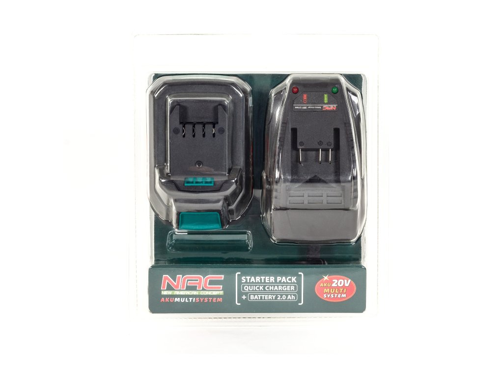 Vlastníte nářadí či jiný přístroj z řady AKUMULTISYSTEM 20V? Pořiďte si k němu startovací sadu NAC. Skládá se z baterie a síťové nabíječky. Baterie má kapacitu 2,0 Ah a obsahuje lithium-iontové články. Praktický indikátor vás informuje o stavu nabití. Za každé situace máte tedy neustálý přehled o tom, jestli je nabíjené zařízení připravené k provozu.