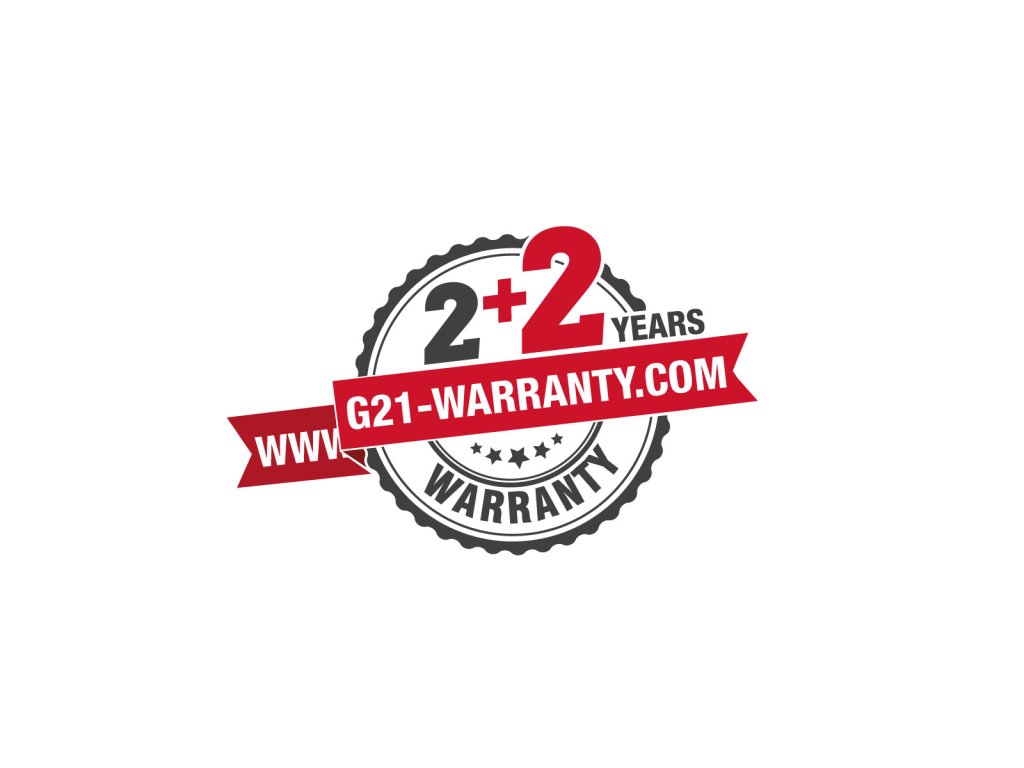 Za kvalitu tohoto produktu ručíme 4 roky. Ke standardní záruční lhůtě 2 roky získáte registrací na webu http://g21-warranty.com prodloužení záruky o další 2 roky. Využijte tuto možnost a po koupi si zaregistrujte. Prodloužená záruka 2 + 2 roky se vyplatí!