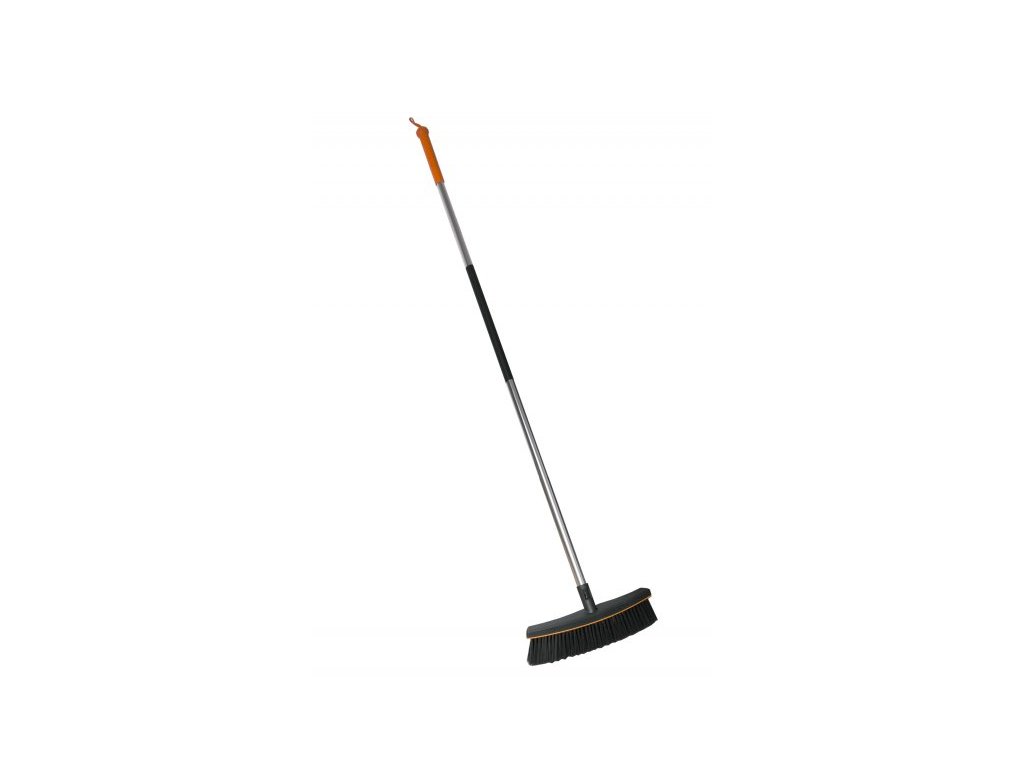 Univerzální plastový smeták s alu násadou 160 cm se systémem click, šířka 37 cm, odolné štětiny pro různé práce na zahradě a na zametání dlážděných ploch. Díky svému úzkému tvaru vhodné i na zametání schodišť.