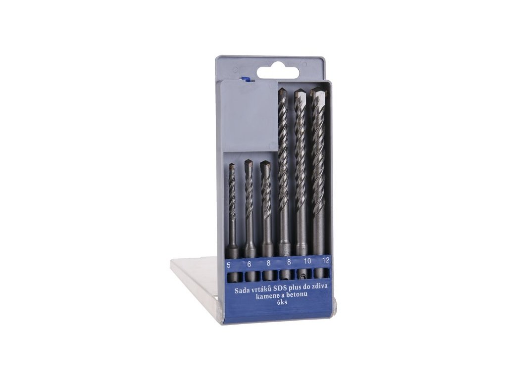 sada kvalitních dvoubřitých vrtáků 5, 6, 8 *110mm a 8, 10, 12 * 160 mm, SDS+ přesně uložené plátky ze slinutých karbidů (vysoké tvrdosti), uchyceny pájením při teplotě přes 1000°C - pro lepší snášení vysokých teplot při vrtání speciální tvar šroubovice vrtáku zajišťuje dobrý odvod odvrtaného materiálu z otvoru - rychlé, přesné a výkonné vrtání použití - pro příklepové vrtání mramoru, kamene, keramiky, cihel, betonu, zdiva aj. balení - plastová krabička s eurozávěsem