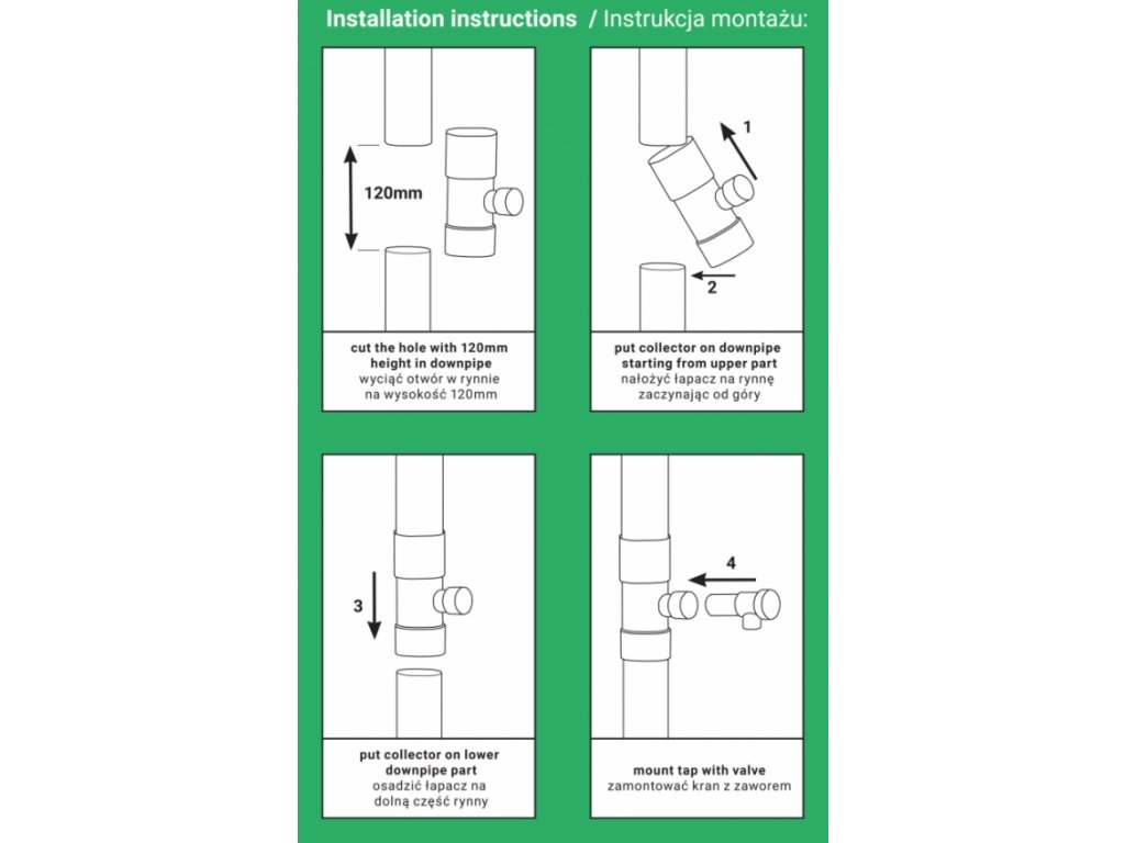 BRADAS sběrač děšťové vody s ventilem je redukce pro okapový svod, který lze použít pro svodové rubky z PVC a kovu o průměru 100 mm. Je vyroben z vysoce kvalitního ABS plastu a díky snadné montáži a ventilu s regulací průtoku vody je ideálním řešením na otázku, jak efektivně zachytit dešťovou vodu.