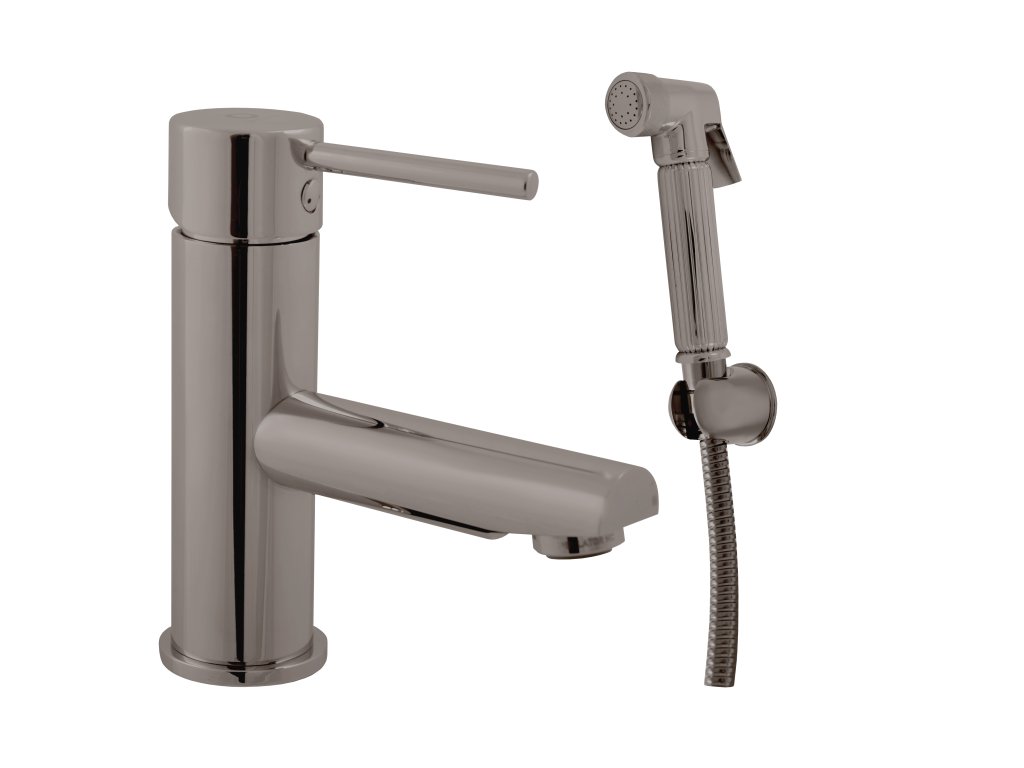Vodovodní baterie umyvadlová/bidetová stojánková se sprškou bez otvírání odpadu.