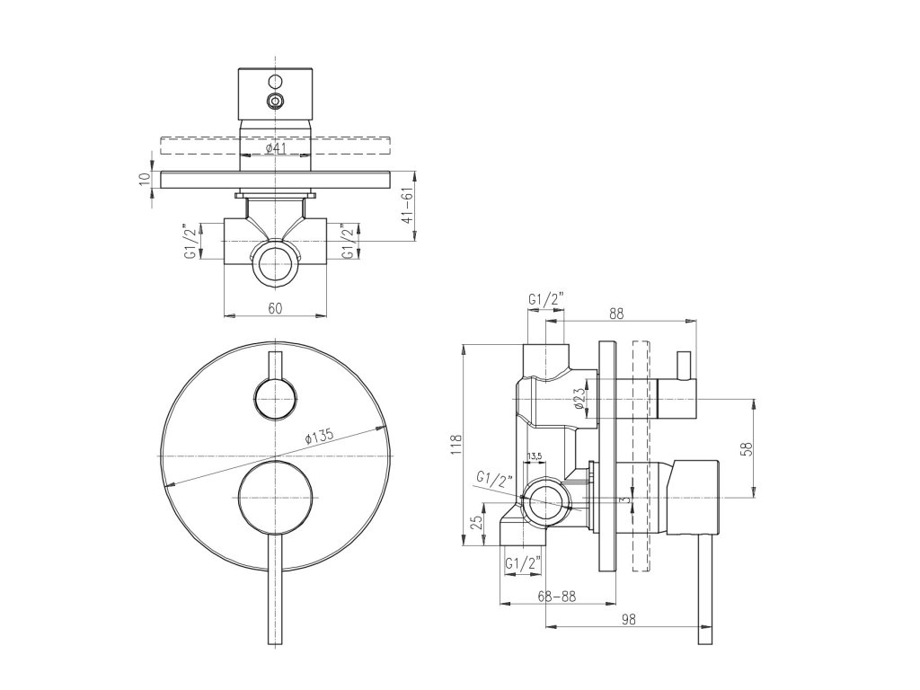 Tuto baterii můžete použít buď do sprchového koutu jako kombinaci hlavové a ruční sprchy a nebo k vaně jako kombinaci např. napouštění přepadem a ruční sprcha nebo výtokové ramínko a ruční sprcha.