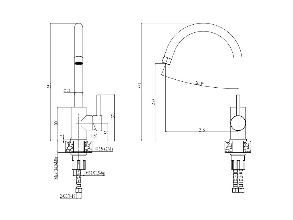 Vestavěný nebo dřez se spodní montáží, univerzál.