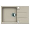 Vestavěný dřez, univerzál. Provedení : granitový dřez s odkapem Vnější rozměr: 780 x 480 mm Rozměr vaničky: 400 x 400 x 180 mm Exentrický sítkový ventil 3 1/2 s přepadem, sifon pro úsporu místa s odbočkou na myčku Úchyty a těsnění pro upevnění dřezu v balení S otvorem pro baterii Návod pro instalaci v obrázcích na obale Instalace do skříňky o šířce 600 mm Baterie Afra Vysokotlaká baterie otočné ramínko rozměr:200 x 323 mm provedení: barevný nástřik