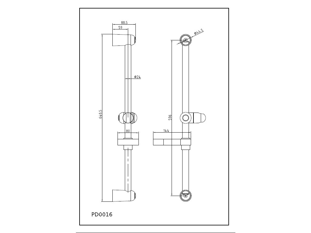 Sprchová tyč s posuvným držákem sprchy o délce 600 mm s průměrem 25 mm.