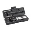 úderový šroubovák - sada s bity odnímatelná upínací hlava na bity - na čtyřhranu 1/2" - lze použít i na povolování šroubů a matic masivní tělo uzpůsobené mechanickému namáhání, princip - vnitřní mechanismus těla šroubováku zajistí po úderu pootočení hlavy a tím trhnutí a uvolnění hlavy vrutu popř. šroubu - doporučení v kombinovaci spolu s chemickými uvolňovači se úspěšnost uvolnění spoje zvyšuje! CrV bity - S 7x35, 8x35, 8x70 mm, PH: 2x35, 3x35, 3x70 mm plastový uzavíratelný box