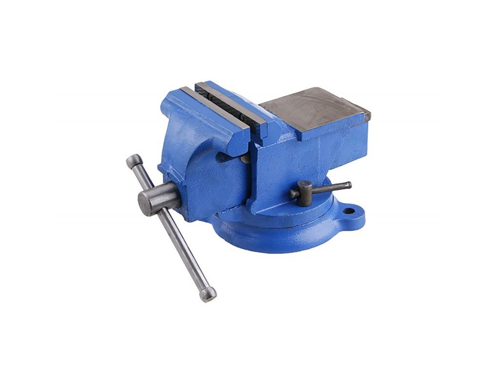 Masivní svěrák s kovadlinkou z litiny, tvrzené čelisti, otáčení svěráku pomocí otočného talíře, tělo a pohyblivé rameno odlité každé z jednoho kusu zaručuje, velkou odolnost a pevnost, váha:5400g, Max. rozevření: 80mm.