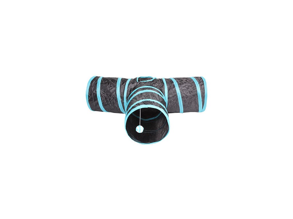 Agility tunel T Three-way je skvělým nástrojem pro rozvoj pohybových aktivit a interaktivní zábavy vašich čtyřnohých kamarádů. Tunel ve tvaru písmene T má každý ze tří východů dlouhý 35 cm. Na jednom z konců je zavěšený plyšový míček s rolničkou, který slouží jako podnět ke hře zvláště pro kočičky. „Rukávy“ o průměru 25 cm jsou spojeny a uprostřed se nachází další otvor s průměrem 15 cm, který může vaše zvířátko prozkoumávat. Pro své rozměry je tunel vhodný pro malá plemena psů, štěňata, kočky a domácí králíky. Tunel je vyroben z prodyšného polyesteru se zapošitým spirálovitým drátem ve stěně. K dostání je v černo-modrém provedení. T Three-way lze vzít s sebou téměř kamkoliv díky jeho skladnosti a hmotnosti 300 g. Tunel rozložíte i složíte během několika sekund a zajistíte gumičkou. S tří-vchodovým agility tunelem si s vaším mazlíčkem užijete spoustu zábavy.