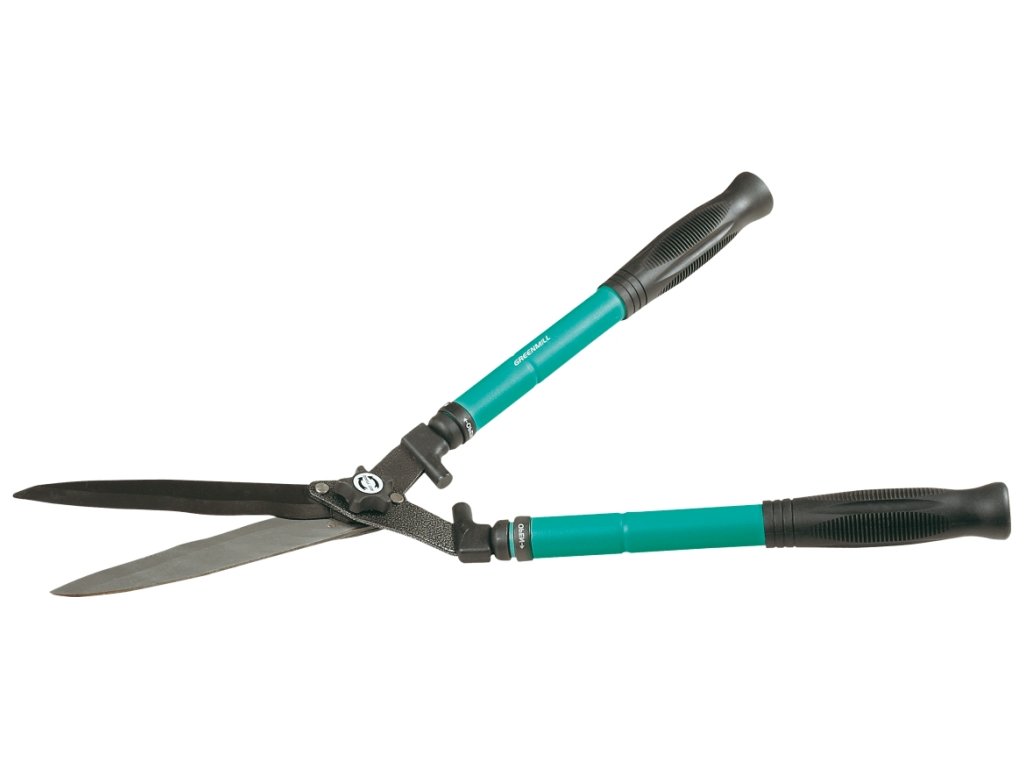 Robustní teleskopické nůžky pro stříhání živých plotů jsou vyrobeny z vysoce kvalitní kalené oceli. Na koncích jsou pohodlné a zároveň ergonomické rukojeti, které zabraňují vyklouznutí nůžek z rukou.
