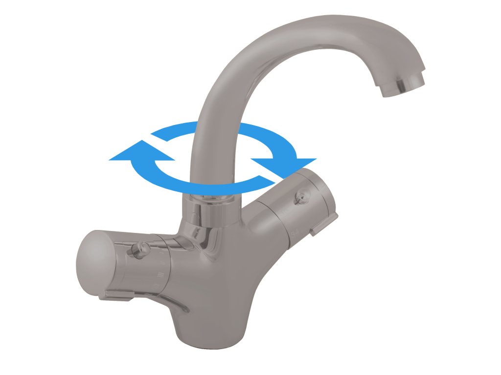 Vodovodní baterie umyvadlová stojánková termostatická bez otvírání odpadu.