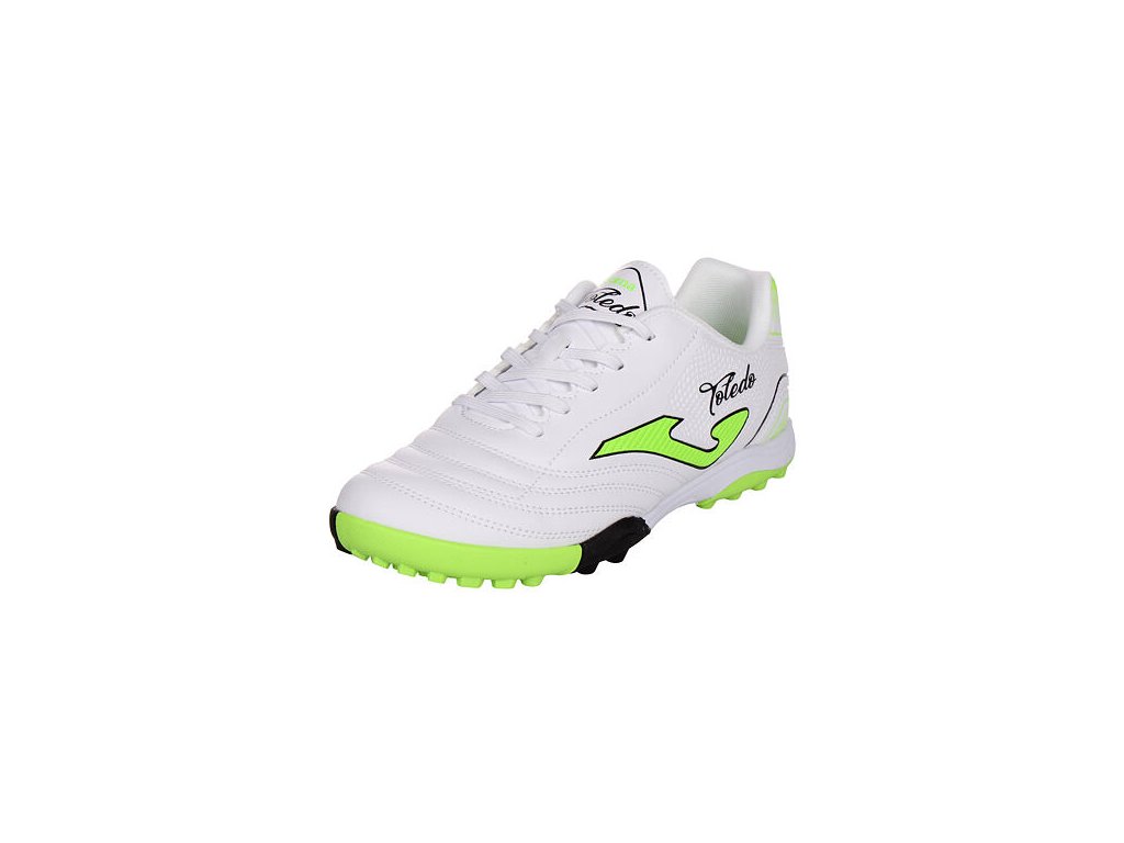 Dětské turfy JOMA Toledo JR 2502 jsou kopačky s výrazným vzorkem na podrážce, která tak lépe přilne k povrchu a pomáhá fotbalistovi udržovat optimální stabilitu. Tento juniorský model na umělé povrchy je navržený pro začínající a rekreační hráče. Svršek je vyrobený ze syntetického materiálu (Fibertech), zatímco podešev z vysoce kvalitní pryže s vynikající odolností proti oděru. K tomu byl použit systém DURABILITY, který prodlužuje životnost boty.