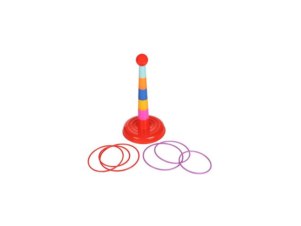 Házení kroužků na cíl je hra, kterou znají z dětství snad všichni. Díky házením kroužků na věž Merco Tower trénujete přesnost hodu zábavnou formou. Celá sada je vyrobená z plastu a díky tomu, že je věž skládací, můžete tak hrát kdykoliv a kdekoliv - doma i na dovolené. Věž se skládá z jedné základny s průměrem 18 cm, šesti dílky a horní kopulí. Po složení má věž výšku 33 cm. Součástí jsou také dvě sady různobarevných kroužků se třemi různými průměry. Házecí kroužky nejsou nutně jen dětskou hrou. Zpestřete si svou párty s přáteli a uspořádejte soutěž o nejpřesnějšího házeče se sadou Merco Tower! - materiál: plast - výška: 33 cm - průměr základny: 18 cm - kroužky: 6 ks, 2 barvy, průměry: 11 / 13 / 15 cm - hmotnost sady: cca 110 g Upozornění: Výrobek není vhodný pro děti do 3 let! Sady jsou různobarevné a dodáváme je dle skladových zásob.