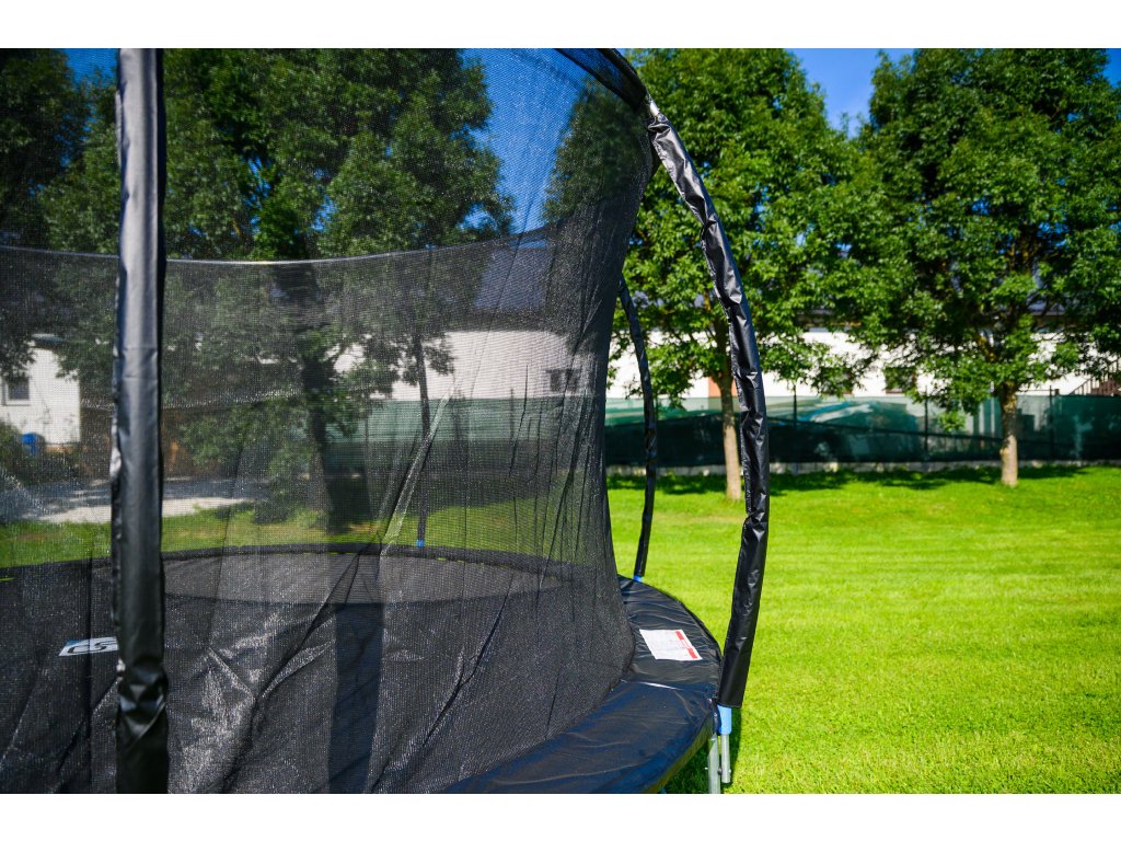 - Ochranná síť trampolíny je z vnitřní strany konstrukce, skákání na trampolíně je tak bezpečnější