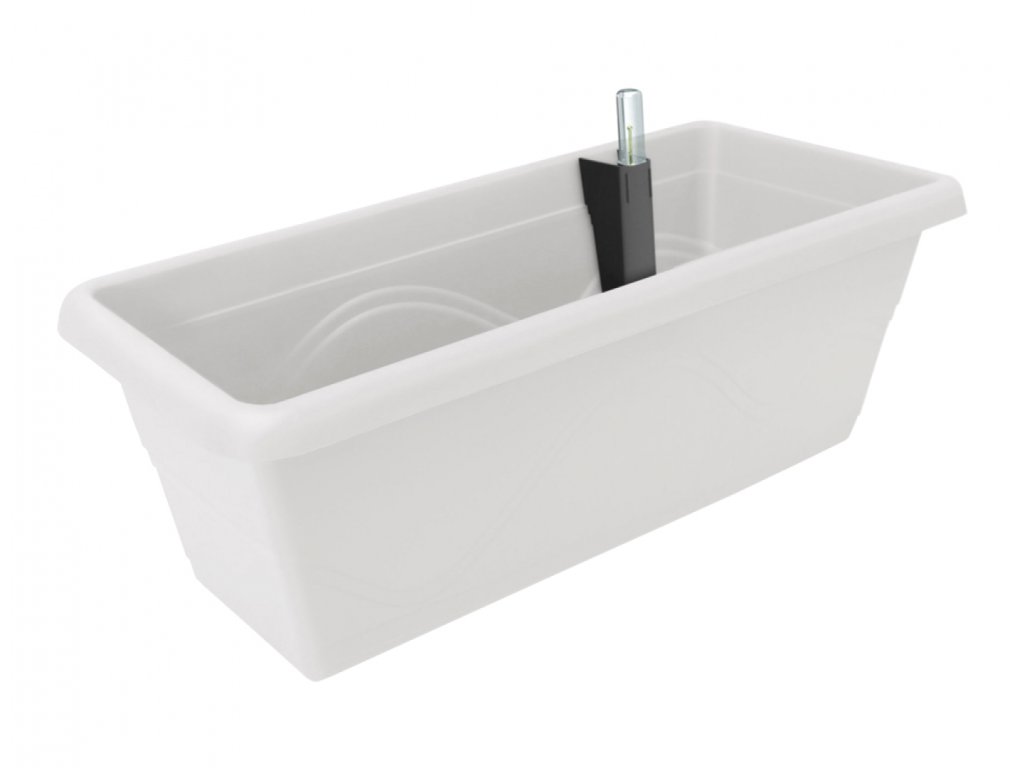 Samozavlažovací plastový truhlík s hladinoměrem a SMART systémem, který je vybaven otvory v roštu pro vhodné umístění napájecího dílu. Truhlíku má na jedné straně vyvýšené dno, to je vhodné odvrtat pro odtok přebytečné dešťové vody. Vyroben z matného, kvalitního recyklovaného plastu. Český výrobek. Barva: bílá. Šířka: 40 cm, výška: 17 cm, hloubka: 20,5 cm.