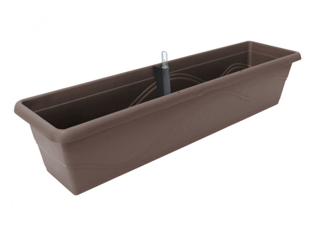 Samozavlažovací plastový truhlík s hladinoměrem a SMART systémem, který je vybaven otvory v roštu pro vhodné umístění napájecího dílu. Truhlíku má na jedné straně vyvýšené dno, to je vhodné odvrtat pro odtok přebytečné dešťové vody. Vyroben z matného, kvalitního recyklovaného plastu. Český výrobek. Barva: hnědá. Šířka: 80 cm, výška: 17 cm, hloubka: 19,5 cm.
