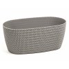 Matný plastový truhlík s efektem evokujícím pleteninu. Barvy jsou odolné vůči UV záření. Šířka: 38 cm, výška: 12 cm.