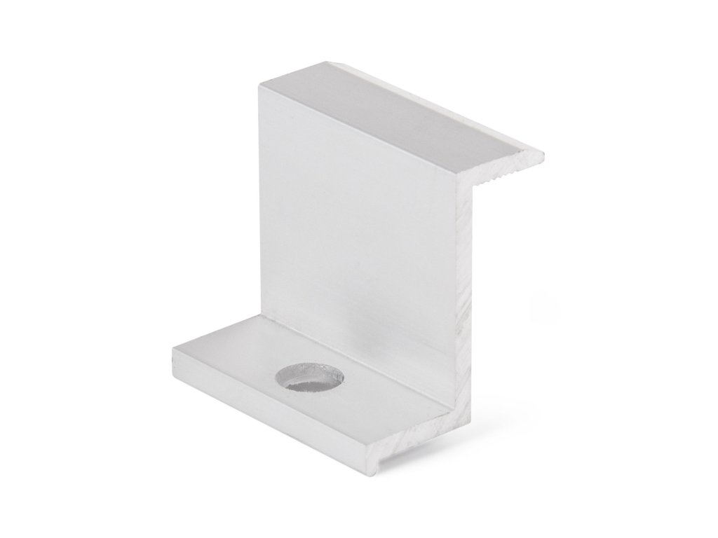 Krajní úchyt panelu, vhodný pro instalaci solárních panelů, určený pro upevnění panelu k hliníkovému profilu, otvor pro šroub M8.