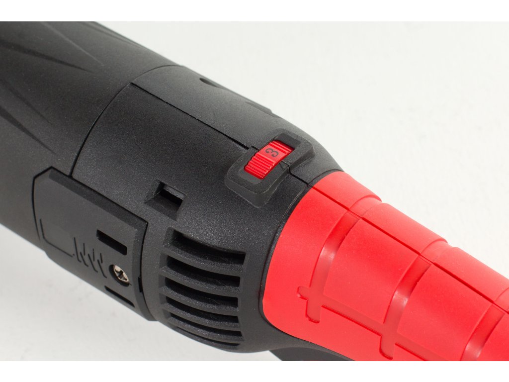 Řezný kotouč o průměru 125 mm bez problému vyměníte. Vše vám tlačítko pro usnadní aritace vřetena. Rukojeť brusky je navíc ergonomicky tvarovaná. Při práci vám zajistí pohodlí. Kromě toho je pokrytá protiskluzovým materiálem, takže ji pevně uchopíte. V balení najdete také přídavnou boční rukojeť.