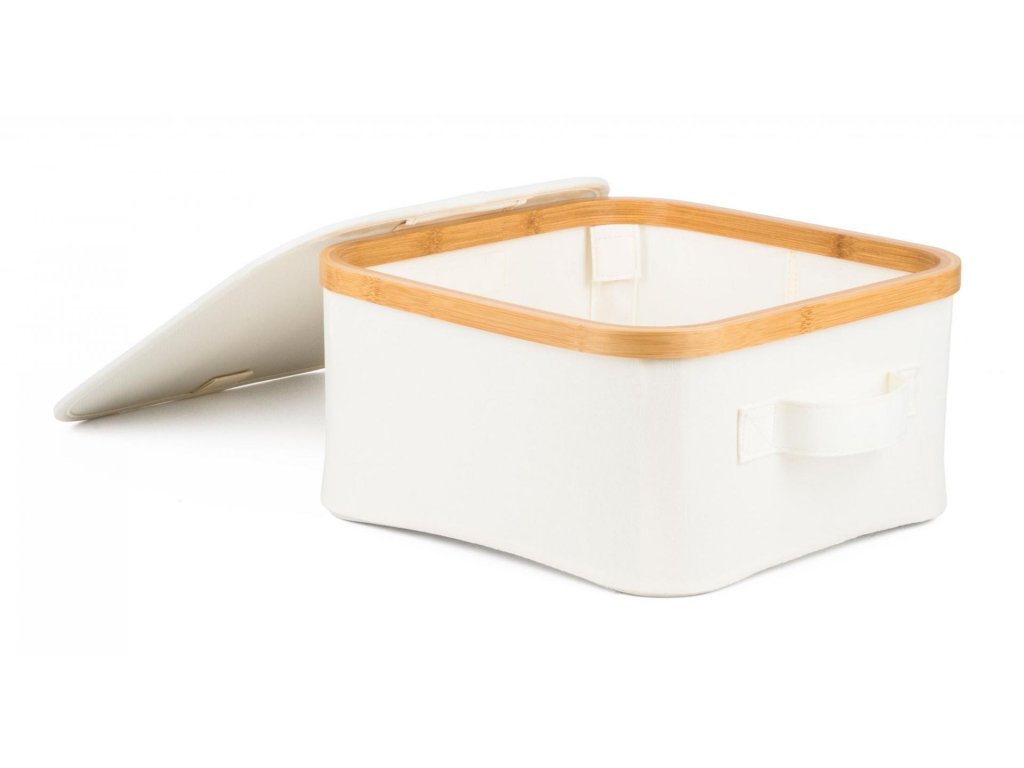 Úložný box G21 30 x 30 x 15 cm, bambusový s víkem, béžový