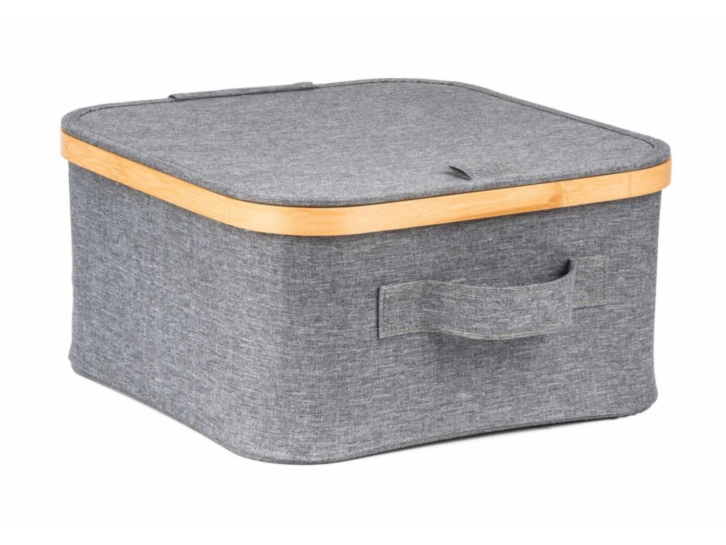 Úložný box G21 30 x 30 x 15 cm, bambusový s víkem, šedý