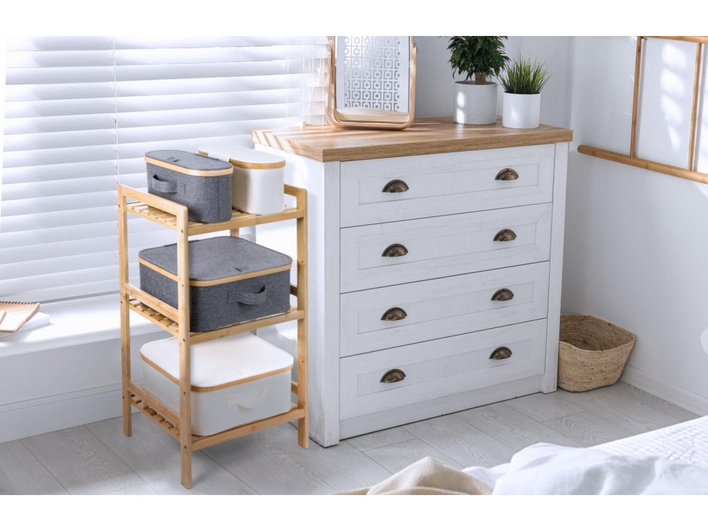 Podívejte se na skvělé vlastnosti úložného boxu s bambusovou výztuhou, látkovým madlem a odepínacím víkem. Box využijete samostatně nebo jako doplněk bambusových regálů a polic G21.