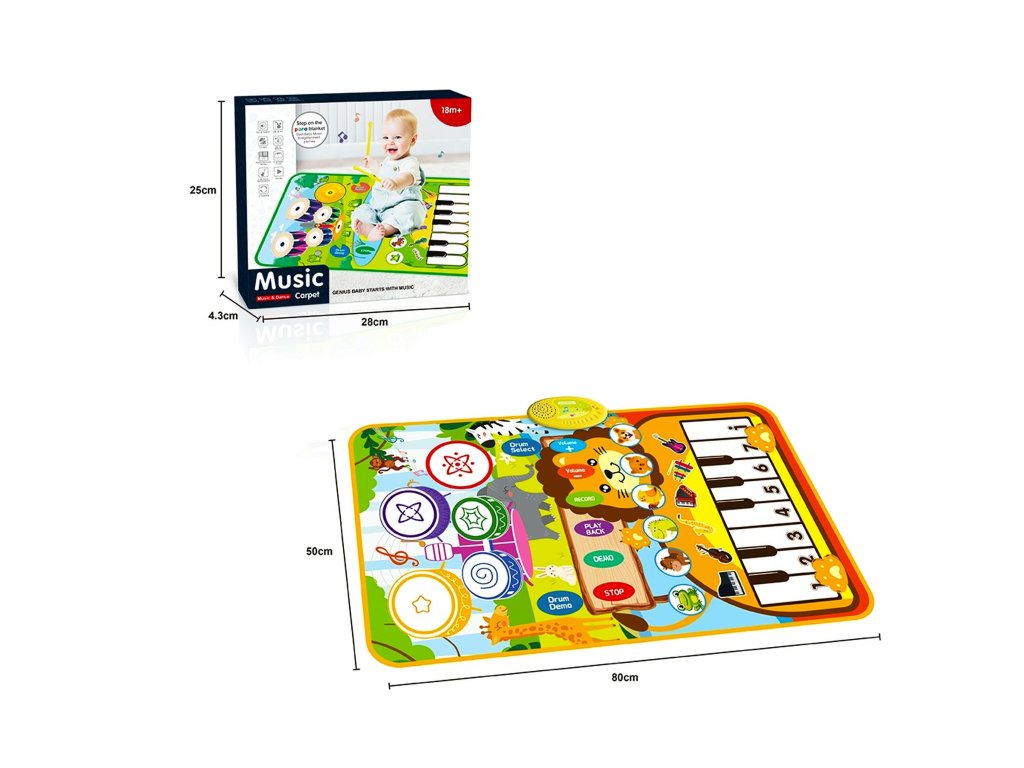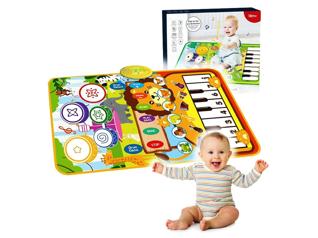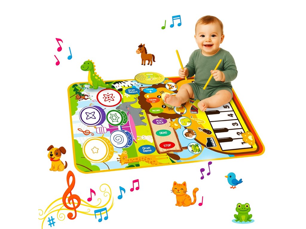 Hudební podložka pro děti je interaktivní vzdělávací hračka, která rozvíjí sluch, rytmus a motorickou koordinaci. Obsahuje barevné klávesy a tlačítka se zvuky zvířat a hudebních nástrojů. Její atraktivní grafika zvířat povzbuzuje k pohybu a kreativní hře od útlého věku.