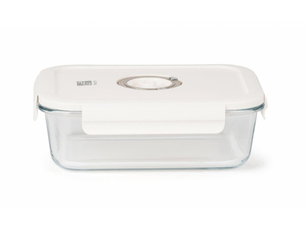 Plastové víko je vybaveno vakuovacím ventilem a praktickým nastavováním data. Budete tak vědět, kdy byly potraviny vakuovány nebo do kdy se mají spotřebovat. Ventil uprostřed víka lze jemně zmáčknout pro snadné uvolnění vakua.