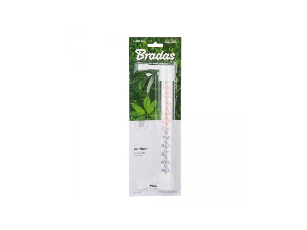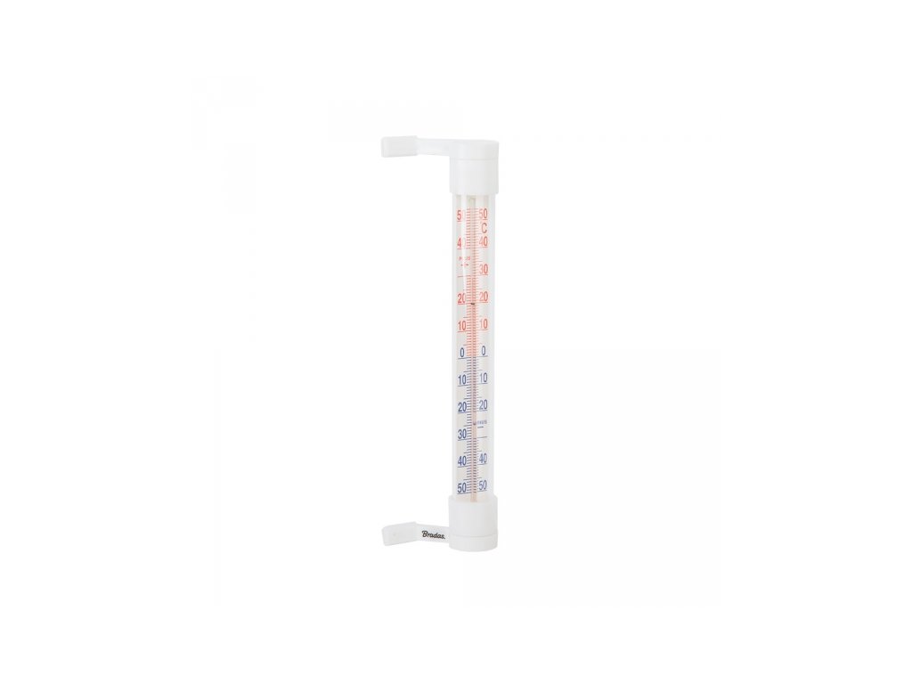 Venkovní teploměr okenní Bradas WHITE LINE pro měření vnějších teplot v rozmezí od -50 do +50 °C. Jednoduchá montáž - lepící páska na držácích umožňuje rychlé připevnění teploměru na svislý povrch, nebo jej lze přišroubovat ke stěně či na okno díky montážním otvorům. Teploměr má velká, snadno čitelná čísla.
