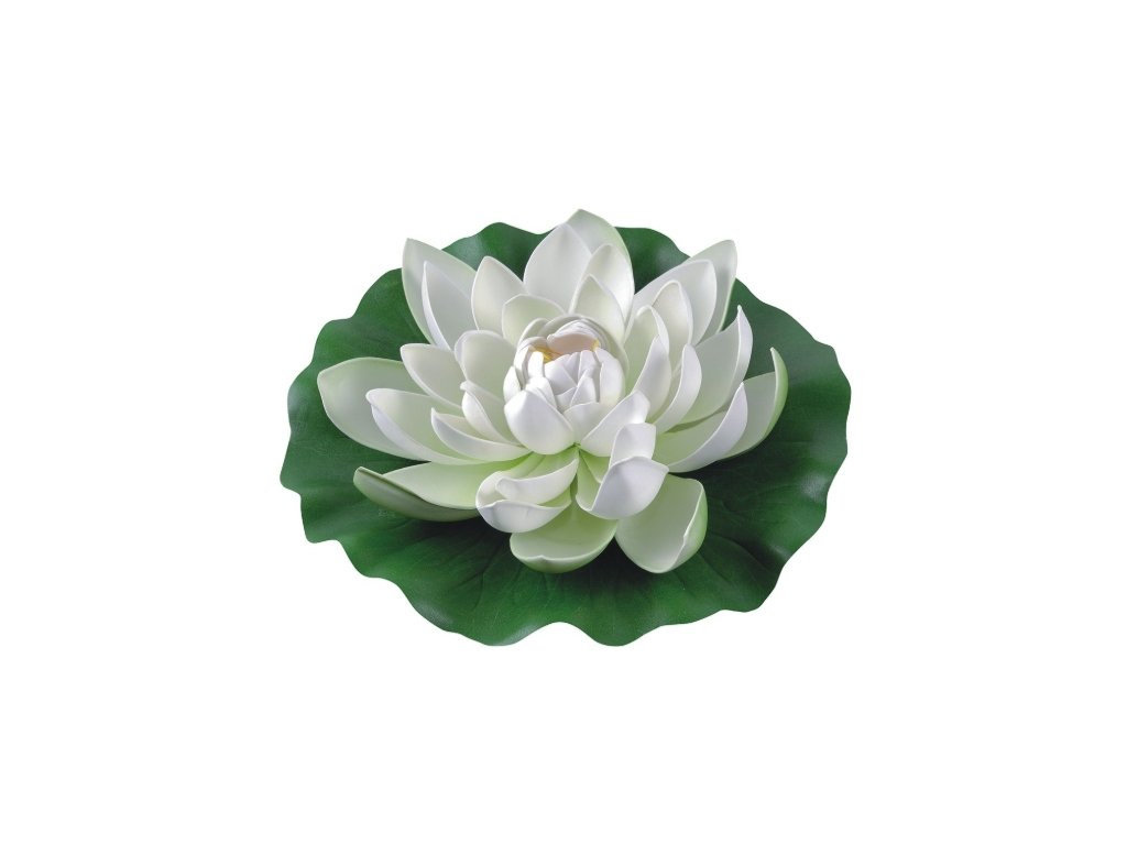 Věrohodný dekorativní květ leknínu vznášející se na vodní hladině, který nikdy neodkvete. Materiál je odolný vůči UV záření.