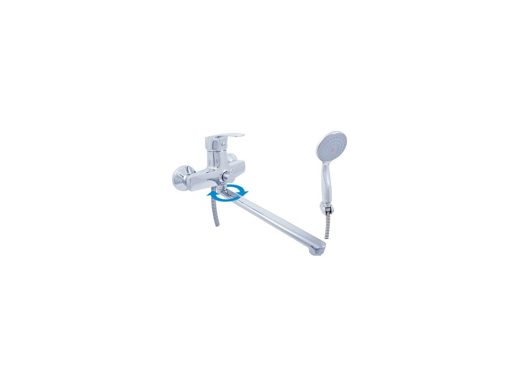 Nástěnná baterie s keramickou kartuší a přepínačem v baterii, součástí je antivápenná sprcha a sprchová hadice o délce 150 cm, záruka 10 let na odlitek a 6 let na kartuši.