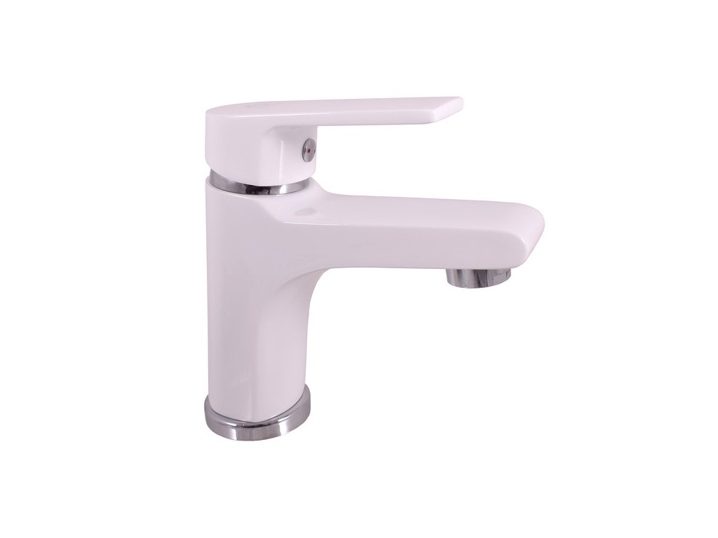 Stojánková baterie bez otvírání odpadu, s keramickou kartuší, výška 143 mm, provedení: bílá/chrom. Záruka 10 let na odlitek a 6 let na kartuši.