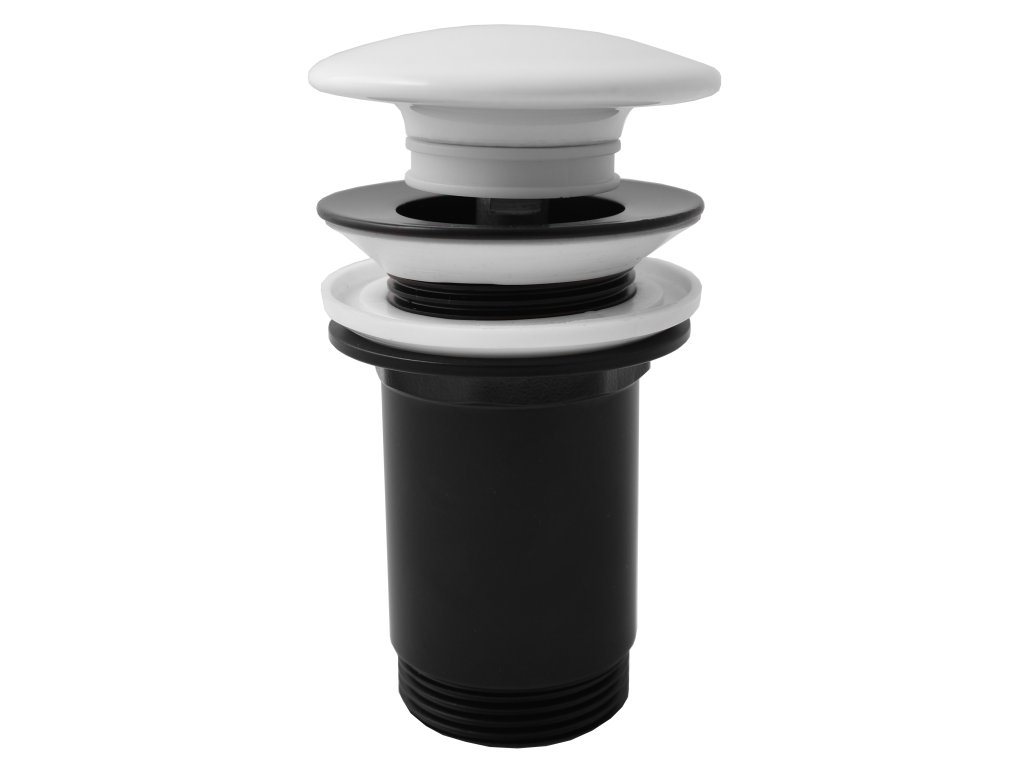 Výpusť umyvadlová CLICK-CLACK 5/4 s bílou keramickou zátkou.