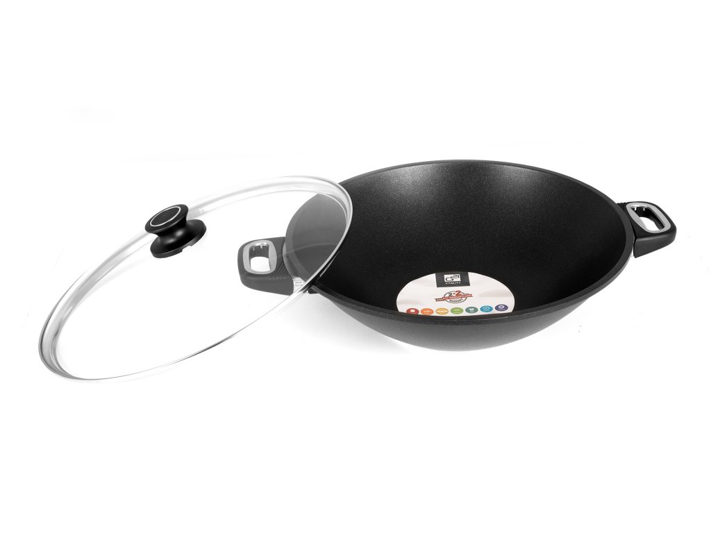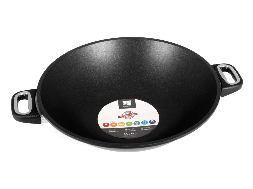 Velká wok pánev, která je vhodná na plotnu i do trouby? Ideální je vynikající wok pánev o průměru 36 cm, se dvěma madly a poklicí. Pánev je univerzální pro všechny typy ohřevů, teplo vede dokonale rovnoměrně, jídlo se na ní díky speciální nepřilnavé vrstvě LOTAN® nepřipaluje a k přípravě pokrmů nemusíte pánev vytírat olejem.
