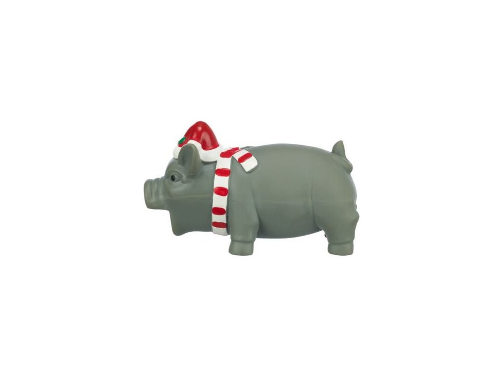 Xmas PIG - vánoční latexové prasátko, 16 cm, výplň polyester, šedá