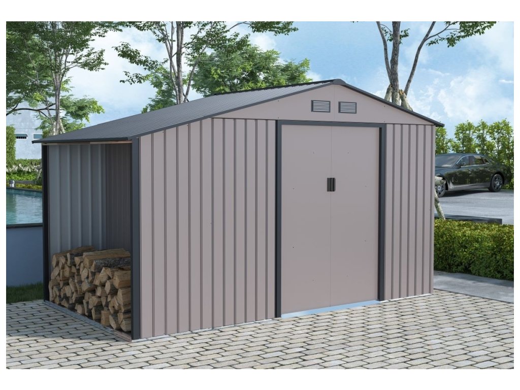 Zahradní domek Sedona B se vyznačuje nejen velkým úložným prostorem 6,67 m2 pro různé zahradní potřeby jako je uschování zahradního nábytku, nářadí, jízdních kol apod., ale je navíc doplněn o přístřešek na dřevo – tzv.dřevník.