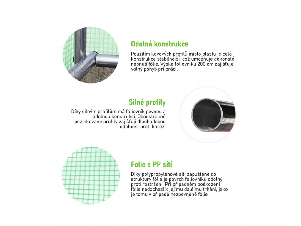 Při výběru fóliovníku se vždy dívejte, kolik konstrukce váží - je to snadná kontrola o síle a odolnosti použitého materiálu.