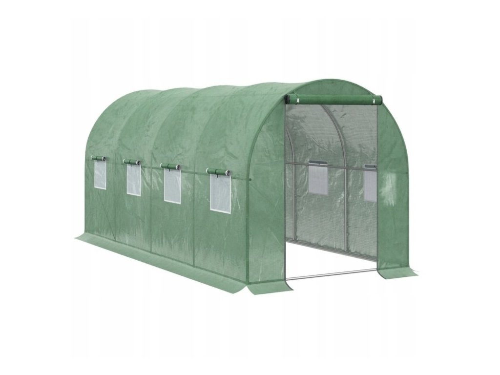Zahradní fóliovník HomeGarden zelený 2,5x4m (10m2) je vyroben z vysoce kvalitních materiálů. Ocelová pozinkovaná konstrukce je doplněna plachtou z polyethylénu s UV filtrem UV-4. Zapuštěná polypropylenová síťka zvyšuje pevnost plachty a zabraňuje jejímu trhání. Boční stěny fóliovníku mají okna opatřená moskytiérou, která chrání před pronikáním škůdců a hmyzu. Okna zároveň slouží k ventilaci a lepší regulaci klimatu uvnitř fóliovníku. Vstup je dostatečně široký a snadno uzavíratelný pomocí zipů. Výška fóliovníku umožňuje komfortní provádění prací spojených s péčí o rostliny.