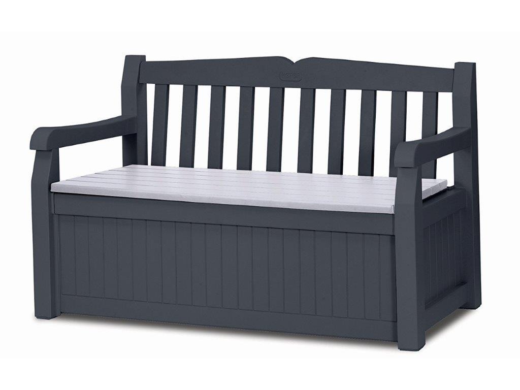 Lavice Keter Eden Garden Bench se však dá využít také jako praktický úložný prostor se štědrou kapacitou až 265 l. Ten najde své uplatnění při skladování podsedáků, polštářů, zahradního i dílenského nářadí či dětských hraček, o které tak už nebudete zakopávat při procházce po vašem dvoře či zahradě.