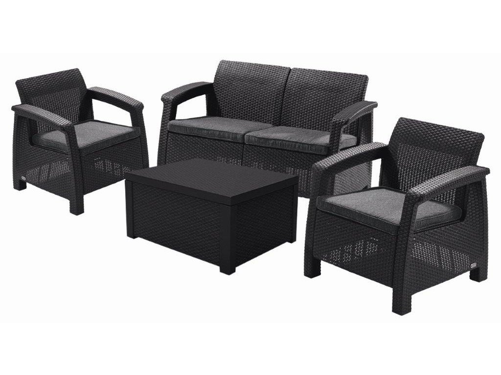 Zahradní nábytek Keter Corfu box set dvousedačka + dvě křesla + stůl grafitový