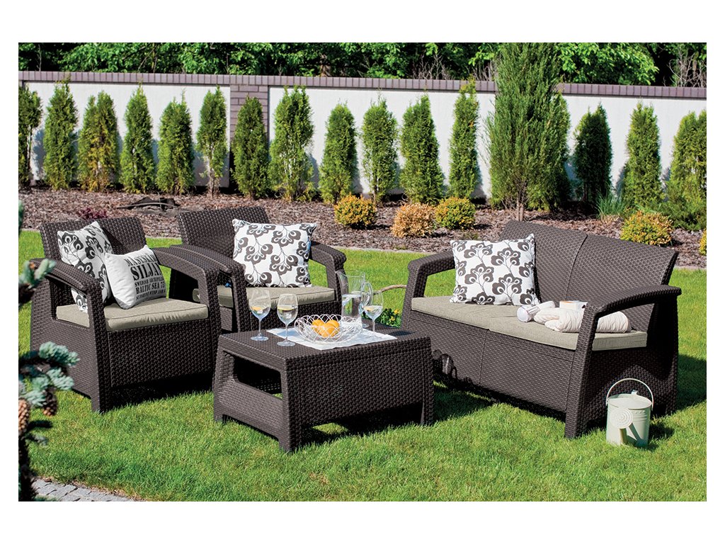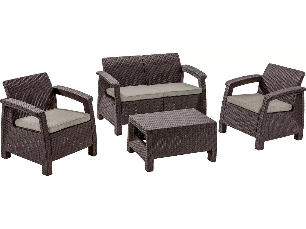 Zahradní nábytek Keter Corfu set dvousedačka + dvě křesla + stůl hnědý