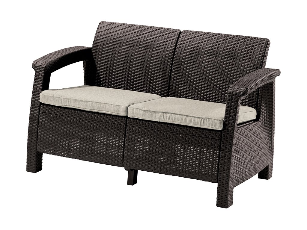 Zahradní pohovka Allibert Corfu Love Seat - 128 x 70 x 79cm - hnědá / béžová