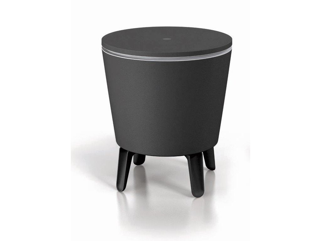 Rozkládací stoleček s úložným prostorem. Po rozložení možnost využít jako piknik bar s prostorem pro nápoje chlazené v ledu. Dvojité stěny pro lepší izolaci.