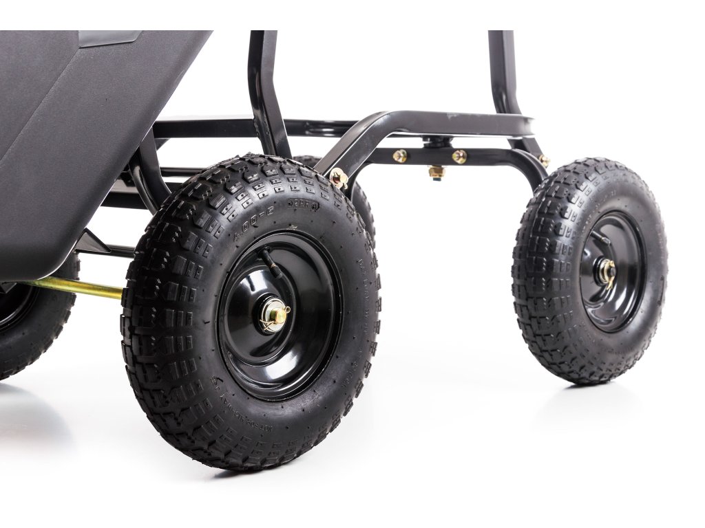Zahradní vozík G21 GA 120 má praktickou sklápěcí nepropustnou korbu o objemu 120 l, nosnost 600 kg a 4 nafukovací kola na dvou nápravách, z nichž jedna je řídící. Vozík se díky tomu snadno ovládá a velmi snadno a pohodlně se s ním manipuluje.