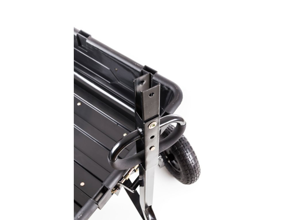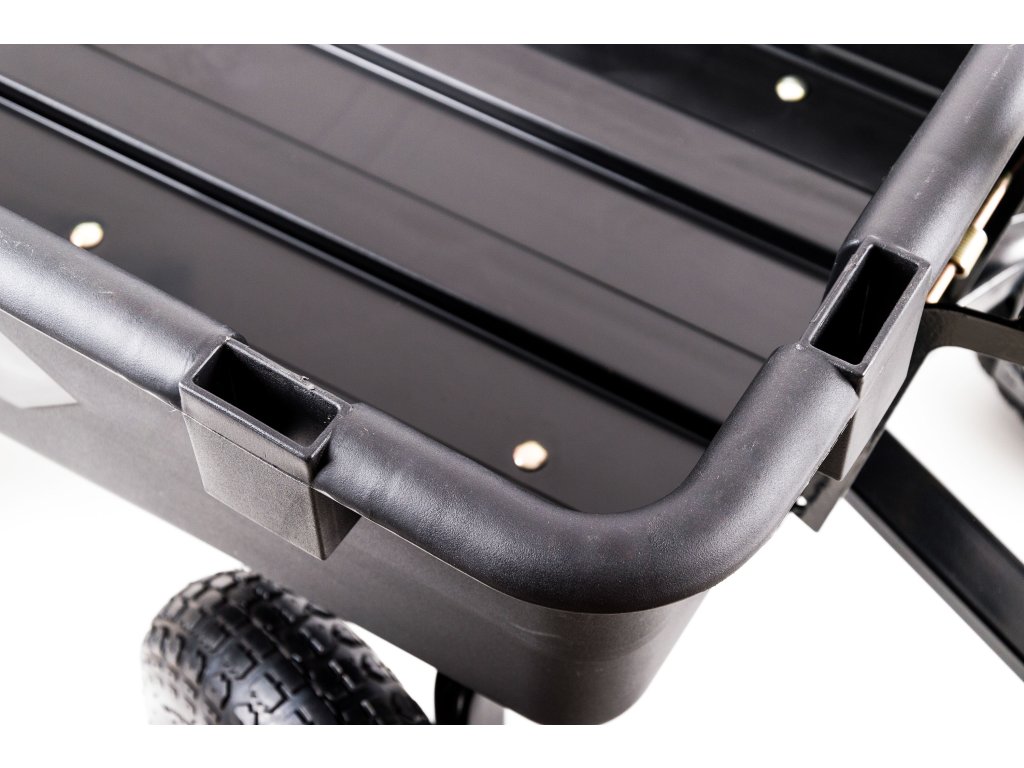 Pevná korba z tvrzeného odolného plastu je vhodná pro převážení pevných, polotekutých či sypkých materiálů. Prakticky řešený výklopný mechanismus usnadní manipulaci při vykládce. Vodicí tyč s rukojetí lze navíc snadným krokem změnit v závěsnou oj a vozík připevnit za zahradní traktor. Celkově je zahradní vozík G21 GA 120 velmi dobře řešeným vozíkem, který díky použitým odolným materiálům, bytelné konstrukci a praktické sklápěcí korbě o objemu 120 l zastane většinu těžké práce při přesouvání a převážení břemen s hmotností až do 600 kg.