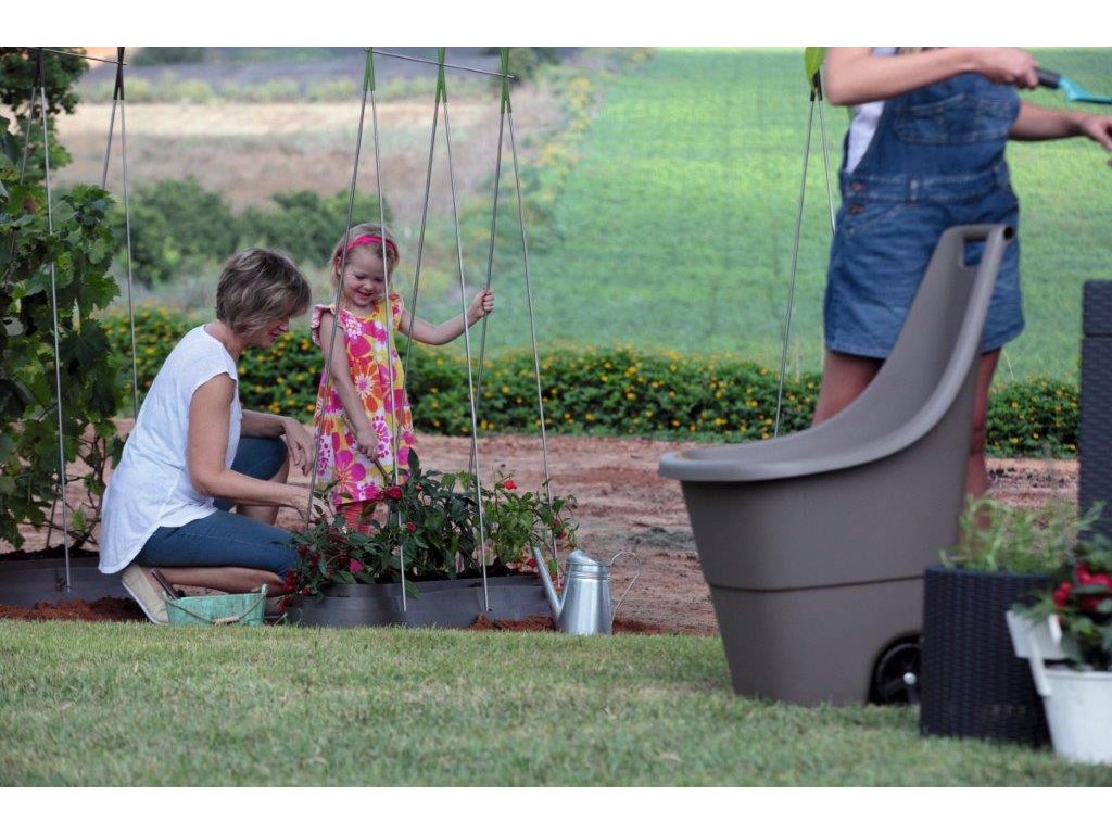 Promyšlený funkční design zahradního koše na kolečkách usnadní převážení zahradního materiálu, nákupu, potřebného nářadí či mokrého prádla na pověšení. Lze jej táhnout nebo tlačit a můžete v něm vozit například kameny, kůru, kompost, plevel či vodu, což vám ohromně pomůže při vašem zahrádkářském snažení. Vozík je vyrobený z recyklovatelné syntetické pryskyřice, takže jeho koupí podporujete udržitelnost naší planety. Navíc je tento materiál odolný vůči extrémním povětrnostním vlivům a UV záření, takže vám bude sloužit spolehlivě a po velice dlouhou dobu.