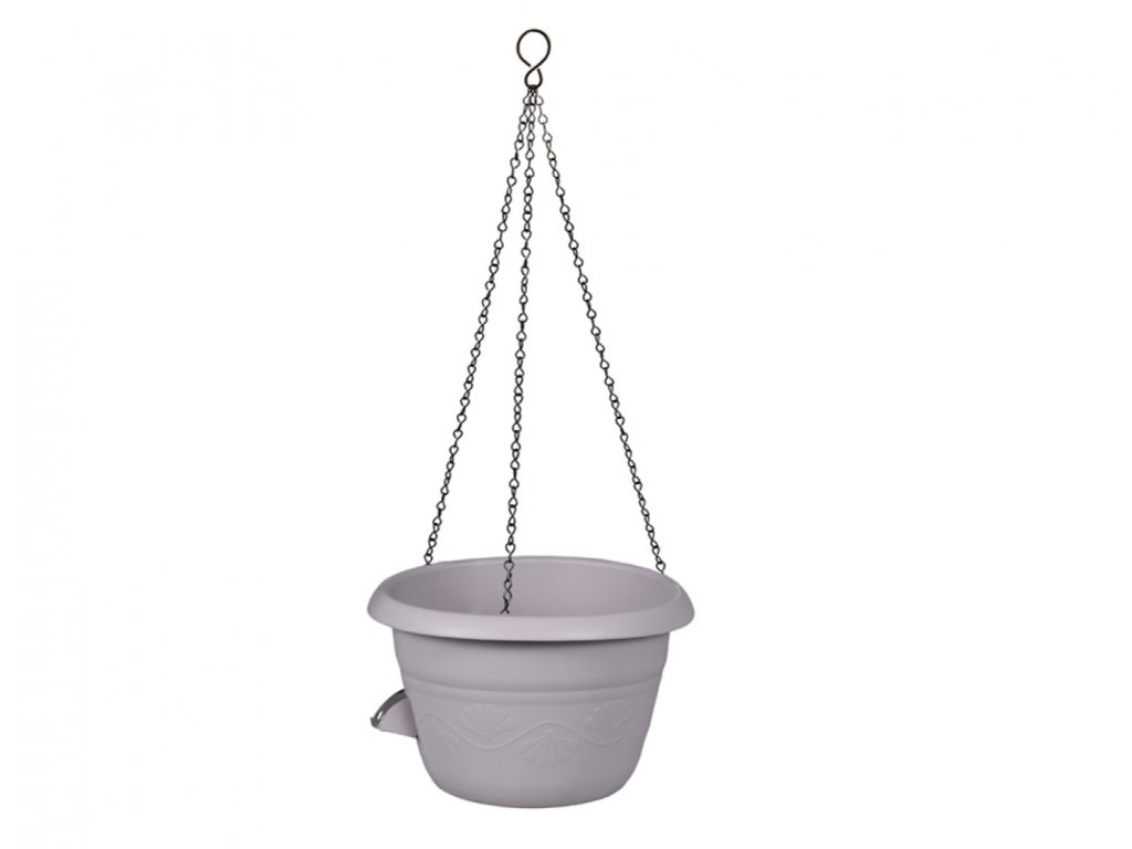 Plastová, samozavlažovací žardinka s kovovým řetízkem pro bezpečné zavěšení. Je vhodná pro všechny druhy letniček, bylinek, ale i pro pokojové květiny. Kromě řetízku je součástí knot a zalévací/přepadový otvor. Šířka: 25 cm, výška: 16 cm. Barva: hnědošedá.